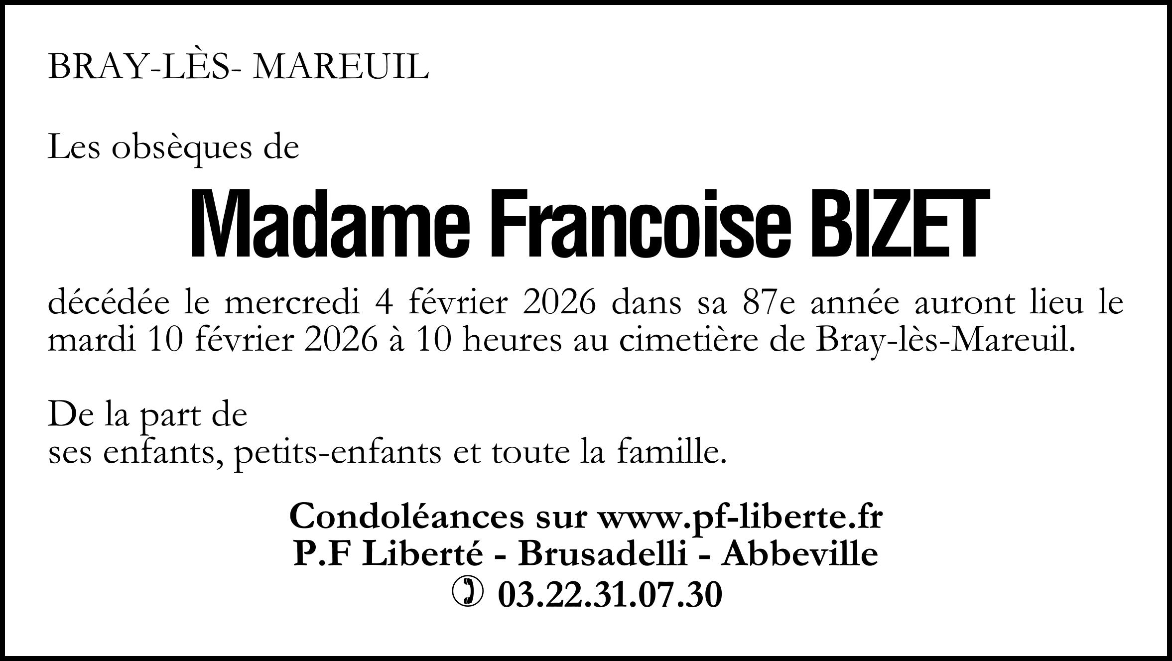 Cette page vous permet de présenter vos condoléances à la famille et de partager l'avis de décès de Françoise.