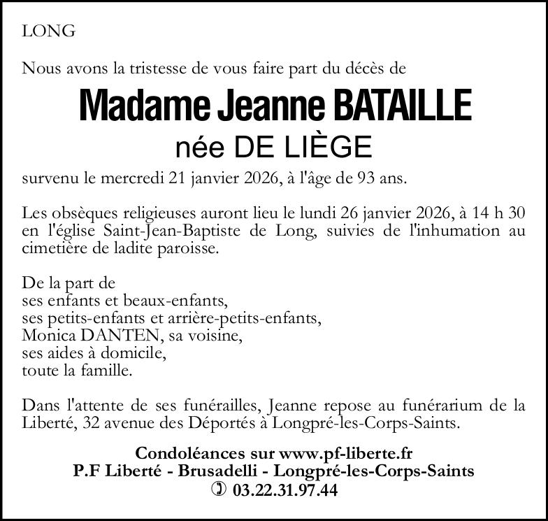 Déroulement des funérailles de Madame Jeanne BATAILLE