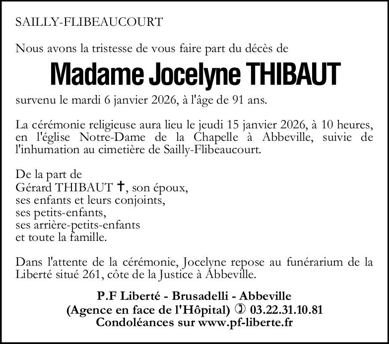 Avis de décès de Madame Jocelyne THIBAUT née BROQUET