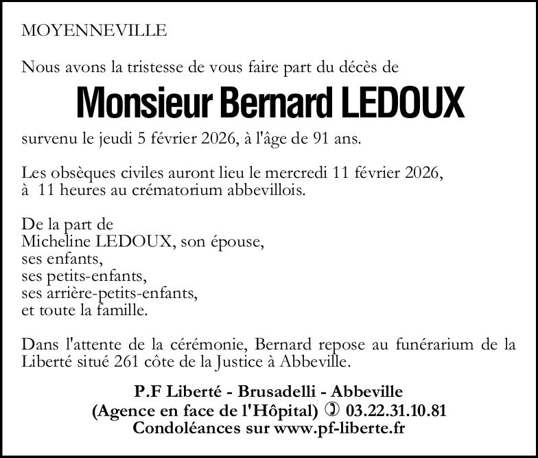 Cette page vous permet de présenter vos condoléances à la famille et de partager l'avis de décès de Bernard.
