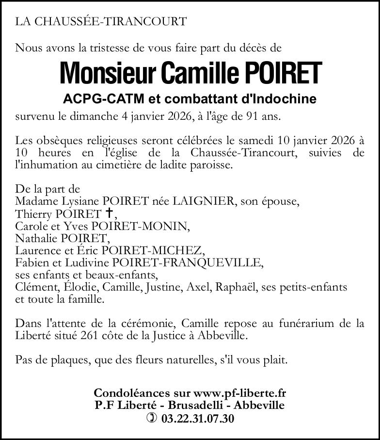 Avis de décès de Monsieur Camille POIRET