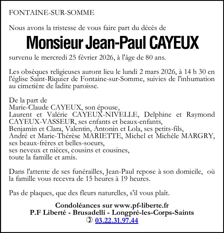Avis de décès de Monsieur Jean-Paul CAYEUX