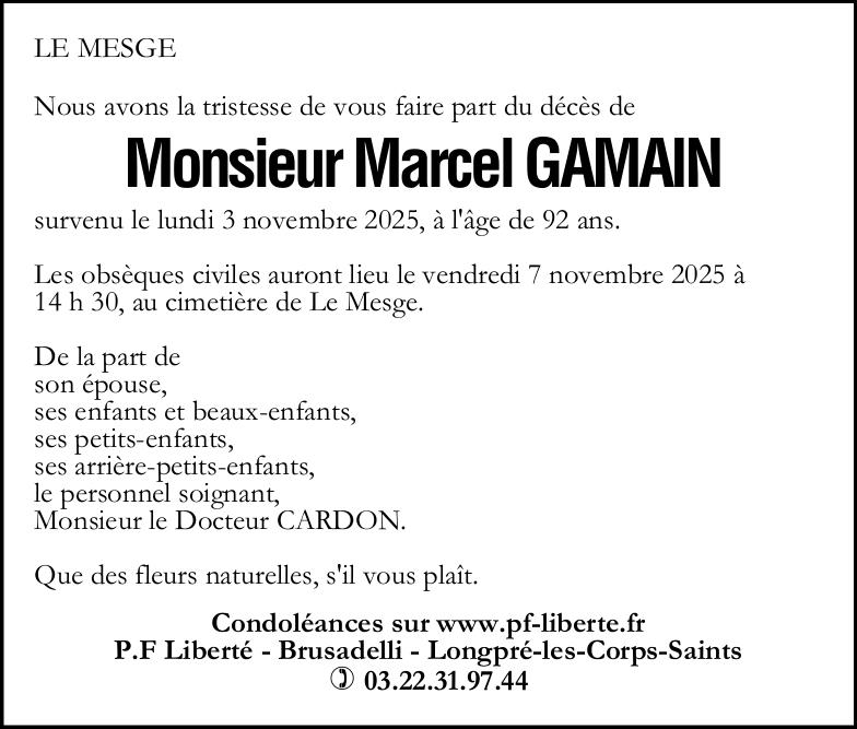 Déroulement des funérailles de Monsieur Marcel GAMAIN
