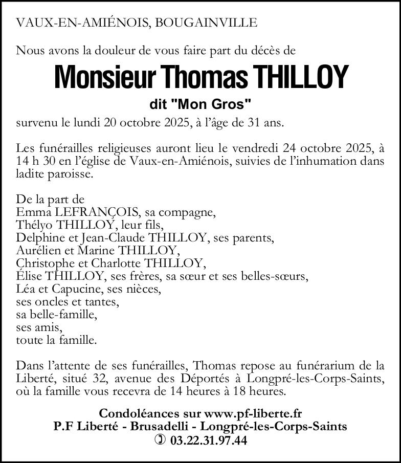 Toutes nos condoléances à votre famille et à tous les proches de Thomas.