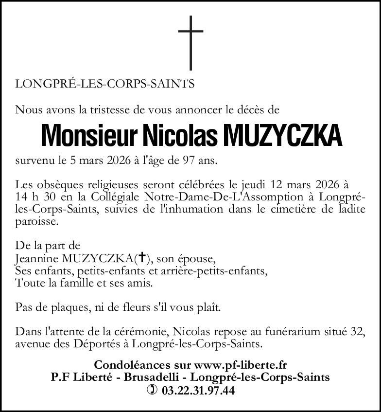 Avis de décès de Nicolas MUZYCZKA